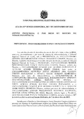 Ata da 117ª Sessão Ordinária do TRE-GO.